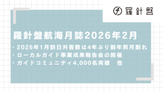 羅針盤航海月誌2026年2月「訪日外客数4年ぶり前年同月数値割れ/ガイドコミュニティ4,000名突破 他」