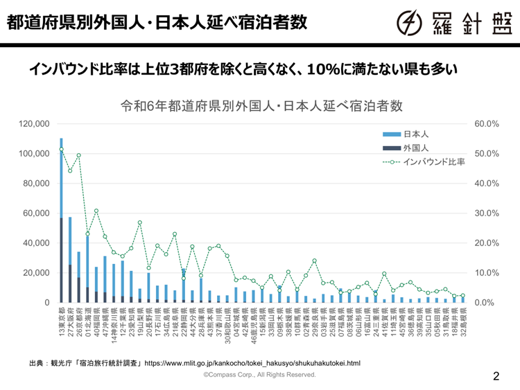 「観光公害=インバウンド」的な取り扱われ方をすることもありますが、インバウンド比率は全体の25%程度です。