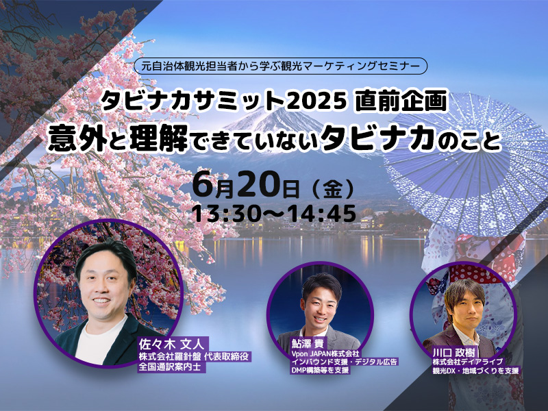 本セミナーでは、自治体の観光担当者がこれからの「体験価値向上」や「商品造成」「人材育成」にどう取り組むべきかを具体的に解説いたします。