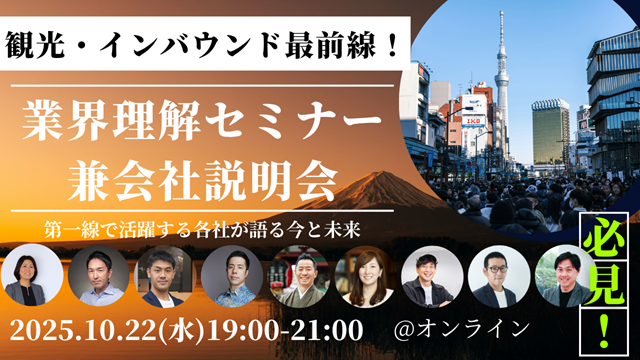 題して、「観光・インバウンド最前線!第一線で活躍する各社が語る今と未来~業界理解セミナー兼会社説明会」